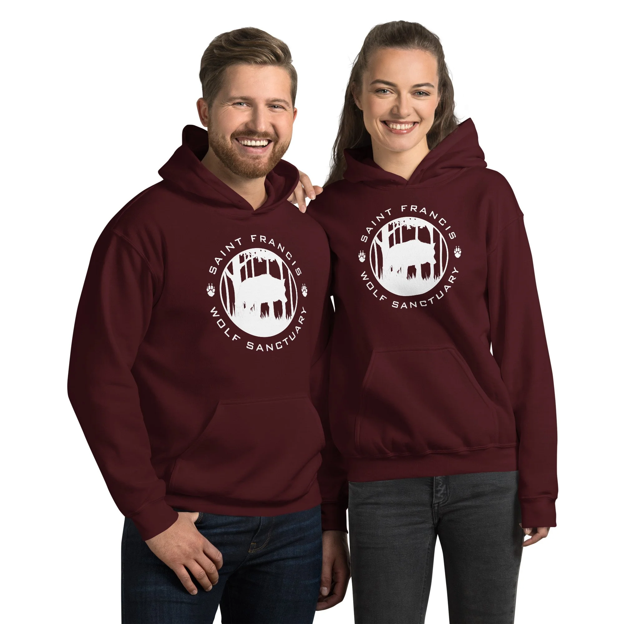 Saint Francis Wolf Sanctuary Unisex (White Print) Hoodie